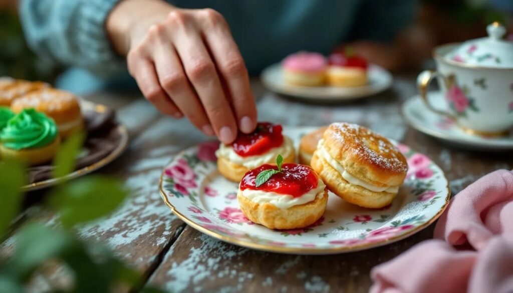 This is a genuinely unresolved debate between two regional traditions in England. In Devon, clotted cream goes on first, then jam. In Cornwall, jam goes on first, then cream. Both produce the same flavors; the difference is structural and visual. The Devonshire method—cream first—provides a stable base that prevents the jam from sliding, which is a practical argument for a standing-up garden party situation. However, the choice is yours to make.